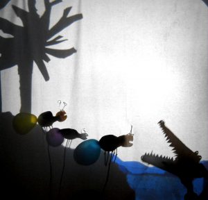 La fourmi et le crocodile, un atelier proposé par le Baobab Théâtre. Laissez-vous entraîner dans l’univers des ombres portées.