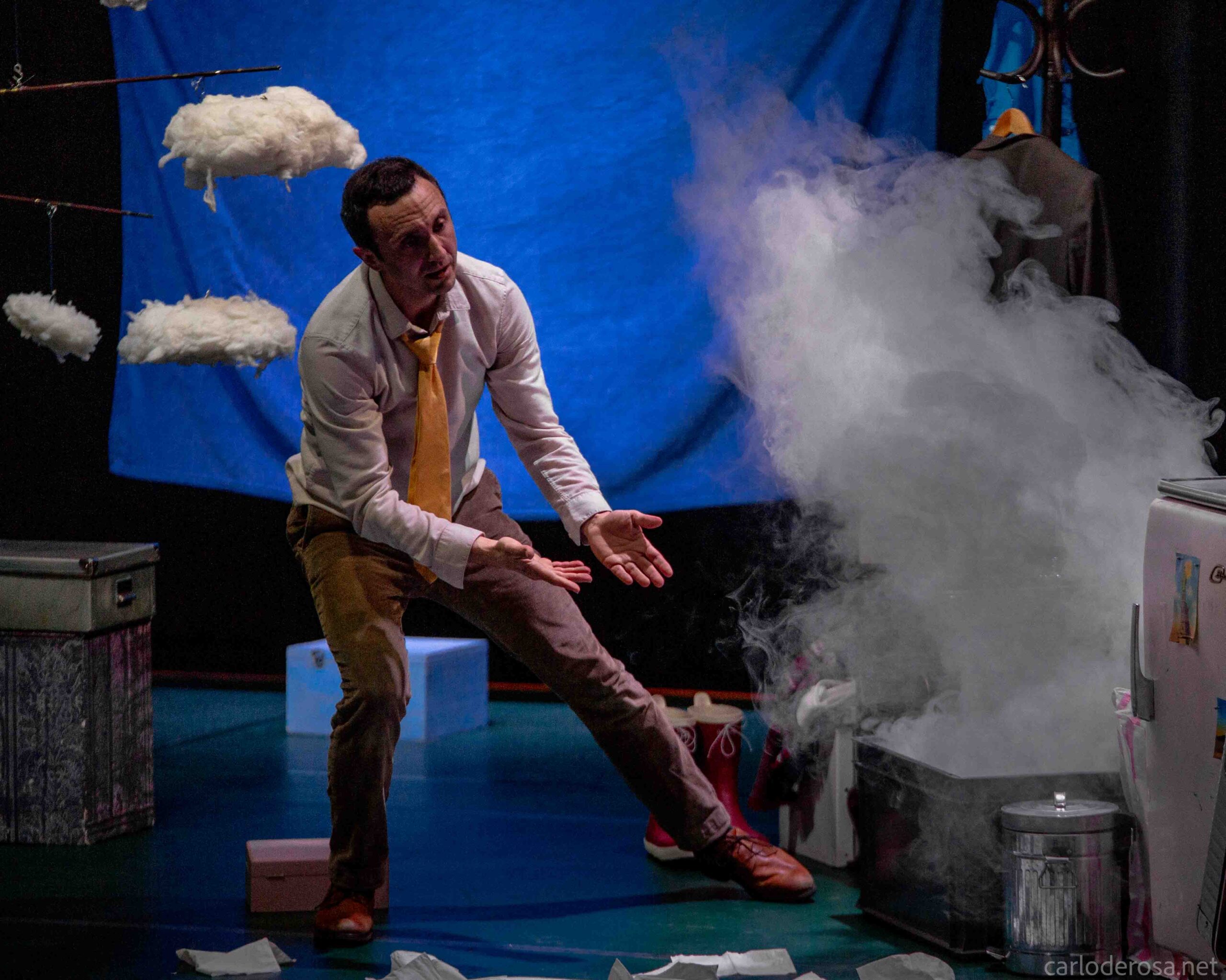 En visite chez le responsable météo : chaque jour, le temps se lève et fait son show. Le matin, il faut le réveiller et le préparer pour la journée, il doit être au bon endroit au bon moment, comme le prévoit le bulletin météo. Le responsable météo a du pain sur la planche : le soleil est excité et veut jouer, les cinq nuages doivent être dans le ciel en même temps, le ciel ne veut pas toujours rester sagement en arrière-plan, et où est la pluie au fait ? Il devrait pourtant pleuvoir ! « Quel temps ! » est un spectacle ludique et très visuel, parfait pour une première expérience théâtrale. Même pour les plus petits, la météo est un sujet constant dès le lever : que porter quand il fait froid ou qu’il pleut ? Ou le soleil nous offrira-t-il une journée vraiment chaude ? Le danseur Moritz Alfons donne vie aux caprices de la nature à travers des objets, des matériaux et des phénomènes.